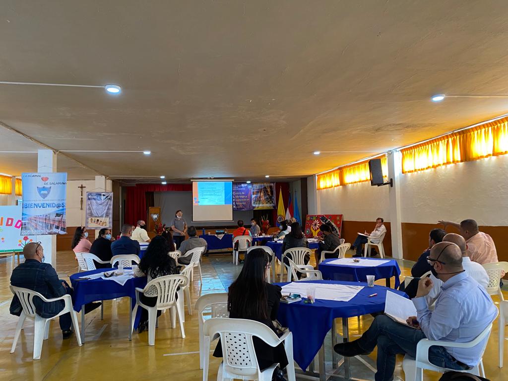 Para ello distribuyeron a todas las Normales del país en los 20 centros, en los correspondiente al eje cafetero distribuyeron las 12 Instituciones Educativas en los dos centro de Caldas. A la Normal de Salamina le correspondió las ENS de Aguadas, Pácora, Aranzazu, Pensilvania, Marquetalia y La Dorada (Esta última en se encuentra en tránsito a ENS) y en Riosucio estuvieron La ENS de Armenia, Pereira, Anserma y Manizales.